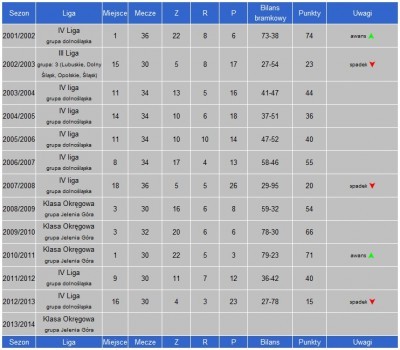 Od pamiętnego awansu w 2002 do III ligi aż do spadku i najgorszych w historii klubu w 2012 tylko 4 zwycięstw w sezonie.