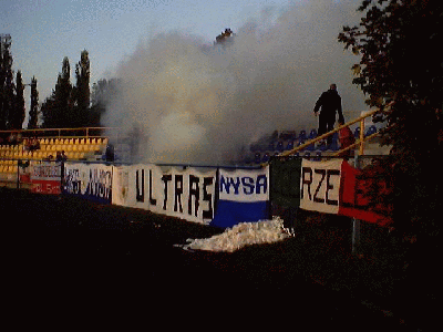 Dorzucę jeszcze totalny klasyk... pierwsze zdjęcie (pamiętna flaga biało czerwona krata ze złotym napisem sprayem) Górnik swego czasu się nią zaopiekował. zdjęcie z rundy jesiennej sezonu 2001-2002.